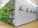 Высота, длина стеллажей и расстояние между полками разработаны так, чтобы не было потери полезного пространства. Стеллажи расположены как вдоль стен, так и рядами, оставляя рабочие проходы.