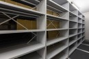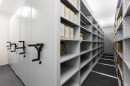 Мобильная база состоит из кареток с колесами, соединенных валами и позволяет, в случае надобности, демонтировать, перевезти и собрать стеллажи в другом помещении.