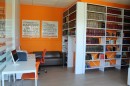 Такие стеллажи не только увеличили вместимость читального зала, но и стали настоящим интерьерным акцентом. Декоративная панель, выполненная в стиле библиотеки, гармонично вписалась в яркий дизайн зала и создала эффект цельного пространства. Для посетителей это не просто стеллаж — это часть атмосферы, которая делает пребывание в библиотеке приятным и современным.