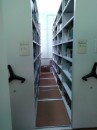 Мобильная база состоит из кареток с колесами, соединенных валами и позволяет, в случае надобности, демонтировать, перевезти и собрать стеллажи в другом помещении.
