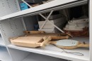 В каждом отсеке стеллажа штанги были размещены относительно размеров одежды, чтобы предотвратить её сжатие, которое приводит