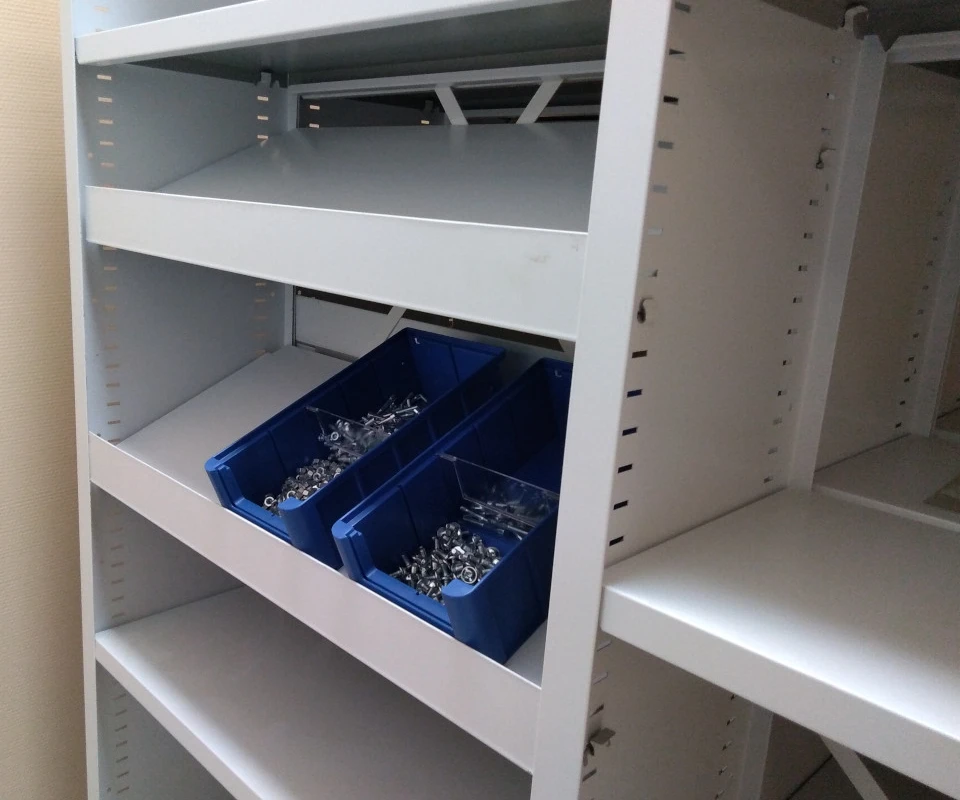 Наклонные полки используются для выкладки образцов периодических изданий на стеллажах в библиотеках, товаров на специализированных складах, комплектующих деталей при размещении на полке пластиковых ящиков.