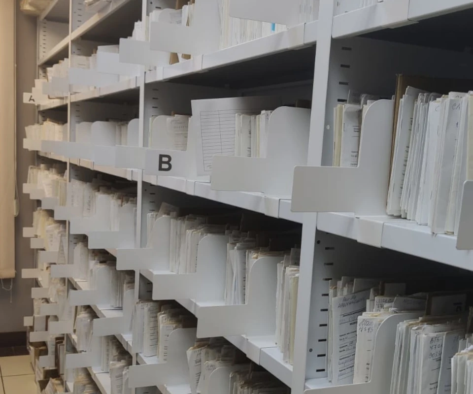 Разделители препятствуют падению документов внутри ячейки хранения, на выступающей части наклеиваются буквенные определители.