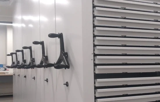 В металлических стеллажах нашего производства может быть любое количество выдвижных ящиков. В одной секции они могут быть разной высоты. И как правило, занимают по высоте не весь стеллаж, а до 1,5 метра, что добавляет комфорта в работе с хранимыми документами или иными объектами. Для эффективного использования пространства архива в секции стеллажа дополнительно можно расположить полки. В случае потребности, ящики занимают по высоте весь стеллаж до высоты 3,5 метра. Мобильные стеллажи позволяют хранить на ограниченной площади в два раза больше документов.