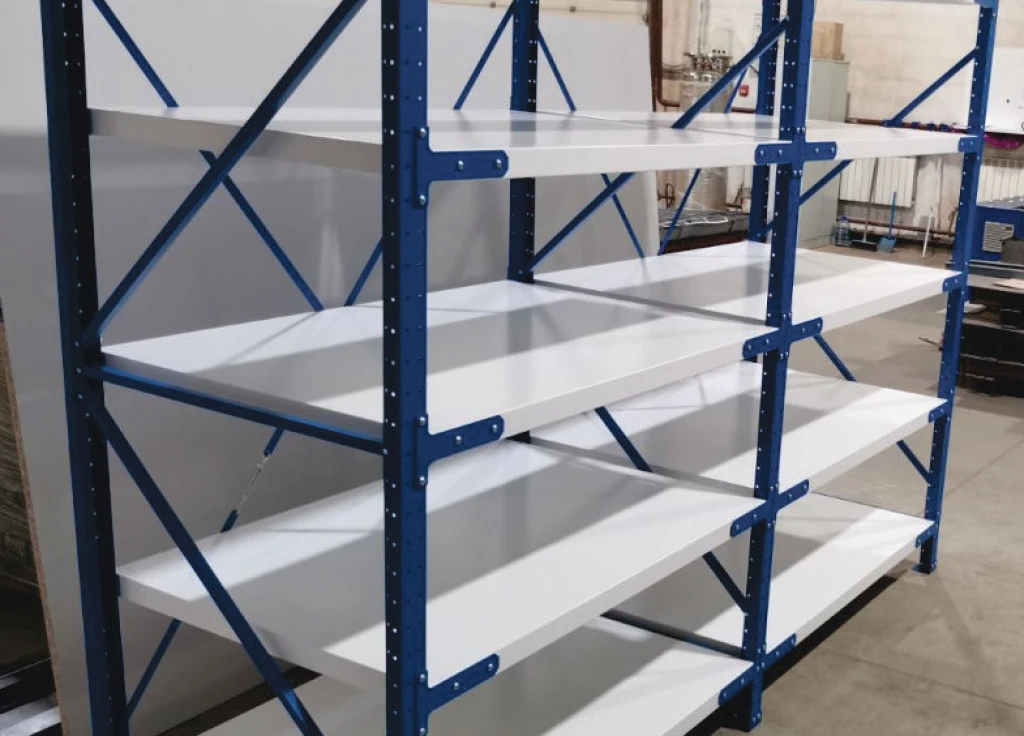 Усиленный стеллаж металлический с нагрузкой на полку до 350кг. Отлично подходят для больших по объему и весу архивов документов на малой площади.